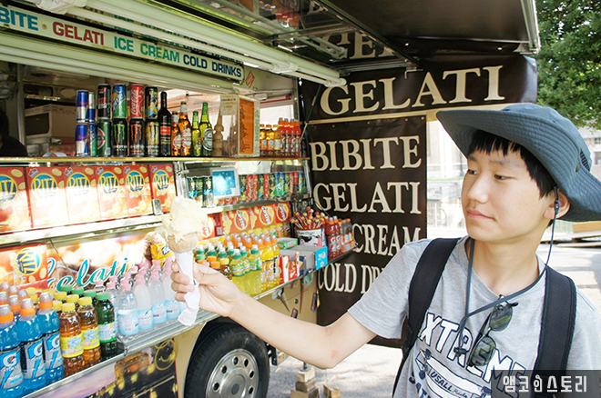 한 여름이라 걷다가 지쳐버린 아이들을 위해 젤라토 아이스크림을 사주고 기운을 북돋아 준다. 이탈리아 로마에서 먹는 젤라토의 맛이란!