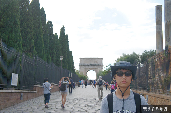 (한 가지 Tip은 콜로세움 들어가는데 긴 줄이 서 있다. 여기 서서 표를 끊고, 다시 포로 로마노 가려면 또 표를 끊어야 한다. 포로 로마노 가는 언덕의 매표소에서 ‘통합권’을 끊으면 줄 안 서고 바로 들어갈 수 있다. 아빠가 좀 걸어갔다 와야 해서 좀 고생하긴 하지만, 나머지 가족들은 편하게 쉬다 입장하면 된다.)