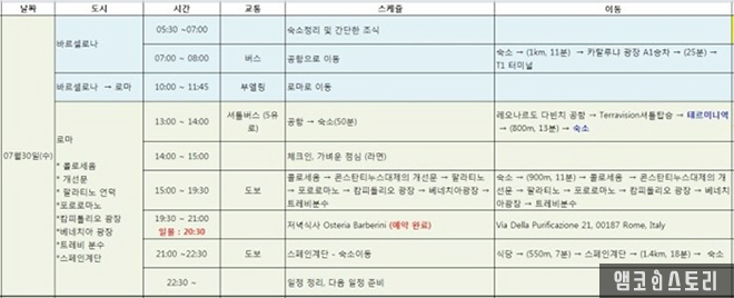(지난 호에서 이어집니다) 3일 동안 정들었던 바르셀로나를 뒤로하고 이제 이탈리아 로마로 가는 일정이 시작되었다. 오늘 로마 일정은 딱 봐도 만만치 않다.