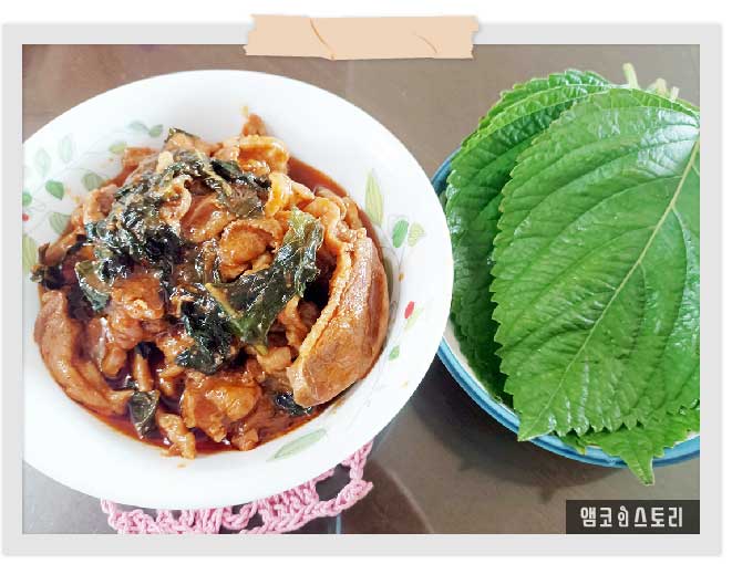 ⑤ 요리가 완성되면, 채소(깻잎)에 싸서 맛있게 먹는다.