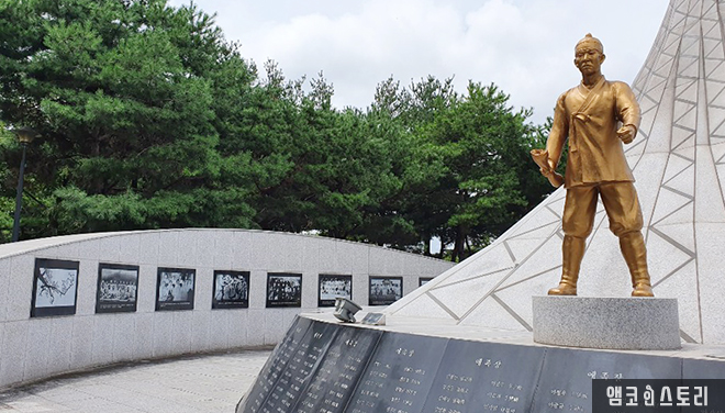 저 멀리 <광주독립운동 기념탑>이 위풍당당합니다. 광주·전라남도 출신의 독립운동가들을 추모하기 위하여 건립된 탑은 8월이면 그 의미가 더욱 깊게 와 닿는데요, 탑은 시민공모를 통하여 선정된 ‘평화의 꽃-피어오르다’라는 작품으로 높이 14m에 이르는 탑신과 조형 벽, 동상 등으로 구성되어 있습니다. 원형의 기단에서부터 뿌리를 상징하는 크고 작은 조각들의 조합이 원을 그리며 상승하여 하나로 만나 꽃을 피우는 모습, 이는 독립운동의 소중한 희생이 자양분이 되어 오늘날의 대한민국을 꽃피웠음을 의미한다고 해요. 기념물 좌우로 건립취지문과 광주-전남의 독립운동을 새긴 안내석이 자리합니다. 그 앞에 잠시 서서 찬찬히 글귀를 읽어 내려갑니다. ‘만약 호남이 없었다면 국가가 없었을 것’이라는 첫 문장부터 가슴을 치네요.