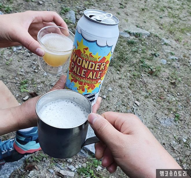 캠핑에서 맥주는 필수지요! 누군가는 백패킹에서 누릴 수 있는 최고의 사치라고 해요. 맥주 한 모금에 번쩍 뜨이는 눈, 급 엔돌핀이 돌며 피로가 한 번에 달아나는 황홀경에 사로잡힙니다. 물과 술만 아니면 백패킹도 많이 수월할 텐데, 아무리 그래도 이 맥주는 포기 못합니다. 참고로 맥주는 함허동천 인근 강화도 유일의 수제맥주 버틀샵은 더비어샵에서 공수했어요. 진귀하고 맛있는 맥주가 많은 곳이지요. 그렇게 함허동천의 밤이 깊어집니다.