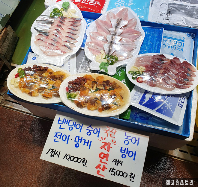 후포항 선수포구 어판장에는 바다를 가까이 두고 회를 즐길 수 있는 횟집들이 즐비합니다. 이곳은 특히 밴댕이회가 유명한데요, 강화의 어팔진미 중에서도 최고의 대접을 받던 것이 바로 이 밴댕이 요리였다고 해요. 본초강목에는 밴댕이를 ‘소어(蘇漁)’라고 하는데, 병으로 허약해진 사람의 기운을 북돋아 소생시켜줄 만큼 이로운 생선이라는 뜻입니다. 옛날에는 이곳 후포항에 소어청(蘇漁廳)이라는 관청을 두고 왕실에서 밴댕이를 진상하는 업무를 전담토록 했다고 해요. 밴댕이는 5~6월이 제철로 가장 맛이 좋다고 하는군요.