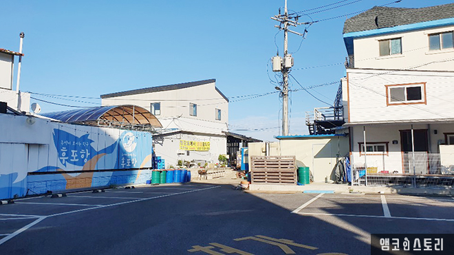 마을 입구를 들어서자 바로 주차장이 보입니다. 주차장 외벽들이 바다를 모티브로 한 그래픽으로 장식되어 눈을 즐겁게 하네요. 이곳에 주차하고 천천히 걸어 마을을 진입합니다. 참고로 바다 가까운 안쪽에 주차장이 더 마련되어 있어요. 그곳에도 차 댈 곳은 많답니다. 고래를 차용한 후포항 로고, 후포항 안내판도 디자인적으로 꽤 인상적인 모습의 항구마을이에요. 마을의 첫인상이 전체적으로 깔끔하고 아기자기합니다.