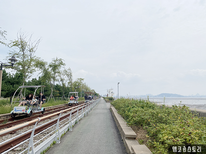 영종둘레길 3코스 바닷길은 오른편으로 인천대교를 바라보며 바다를 따라 걷는 길입니다. 자전거도로와 인도가 아주 잘 정돈되어 있어 걸으며 바다경치를 구경하기 좋습니다. 이곳에는 캠핑장도 있고 레일 바이크도 즐기실 수 있어요. 이번 트레킹의 종착지 구읍뱃터에는 맛집과 커피숍이 많은 곳입니다. 이곳에서 동인천항으로 배를 타고 갈 수도 있습니다.