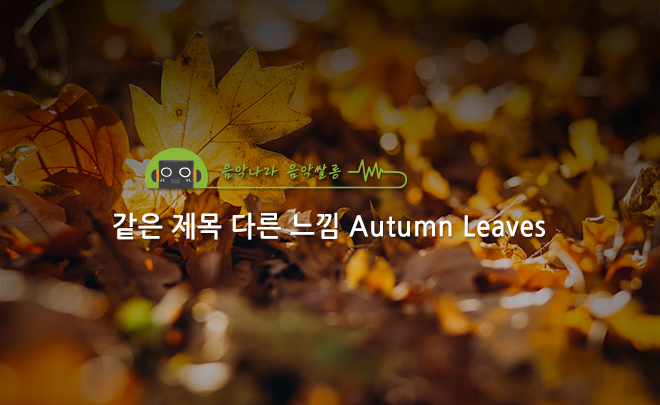 바람이 선선해지면서 기온의 변화에 따라 뭔가 더 감성적이 되고, 그래서 마음이 싱숭생숭해지는 계절. 배는 부른데 마음은 허전하고 그래서 정서적으로 뭔가를 채워야 하는 가을. 가을은 붉게 물든 단풍의 계절이면서 또 낙엽이 떨어지는 시기이기도 합니다. 그래서 오늘은 <Autumn Leaves>란 주제로 노래를 한번 찾아볼까 하는데요, 같은 제목으로 어떻게 다른 노래들이 나오는지 한번 찾아보고 또 감상하는 시간을 가져볼게요.