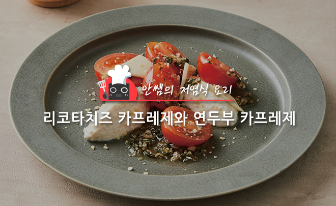 각 요리의 비법을 보면, 리코타치즈 카프레제는 칼륨 함량이 높은 토마토로 나트륨 배출을 돕고, 직접 만든 리코타치즈로 짜지 않은 맛을 낼 수 있습니다. 연두부 카프레제는 으깬 두부, 고소한 치즈, 상큼한 토마토 조합의 절묘한 맛을 낼 수 있습니다.
