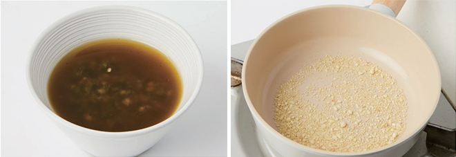 ④ 중간 불로 달군 팬에 다진 마늘을 볶아 마늘 플레이크를 만든다.