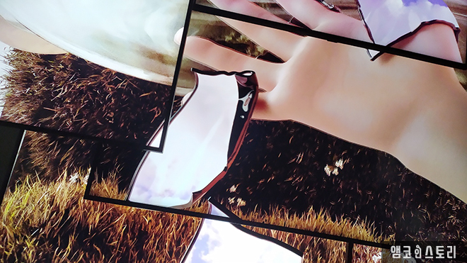 고개를 돌리자 다니엘 이레기의 <편재(編在>가 보여요. 오디오-비주얼 인터렉티브 미장아빔(mise en abyme)로 그림 속의 그림이라고 하는데요, 무한대의 디지털 거울 앞에 선 관람객은 끊임없이 생성되는 반사율에 의한 형상을 볼 수 있어요. 이리저리 몸을 움직이고 동선을 이동하자 프레임 쪼개지듯 이어지는 반사율의 형상들, 제어도 통제도 안 되는 이미지의 향연은 즐거움 속에서도 디지털 세계를 대면하는 우리의 무력함에 대한 불안감을 불러온다고 해요.