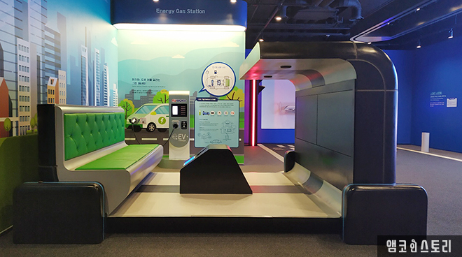 미래 4차 산업기술을 보여주는 ‘스마트에너지’ 관이에요. 4차 산업 기술을 이용한 미래 시대 모습을 AR, LED 등 다양한 모형을 바탕으로 체험할 수 있는 공간에서는 먼저 전기와 신기술의 접목을 통해 더 나은 삶을 구현하는 스마트 홈(Smart Home) 시스템을 만날 수 있었어요. HEMS 체험으로 스마트 홈 기술을 간접 체험할 수 있답니다. 또한 보행자를 인식하고 안내하는 스마트 신호등, 무인으로 배달되는 전기드론 택배 등등 전기로 구현되는 스마트 시티는 가까운 미래 우리의 삶을 예상하게 해요.