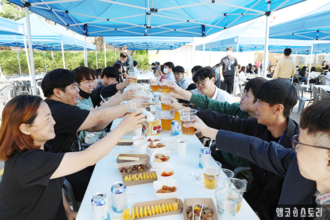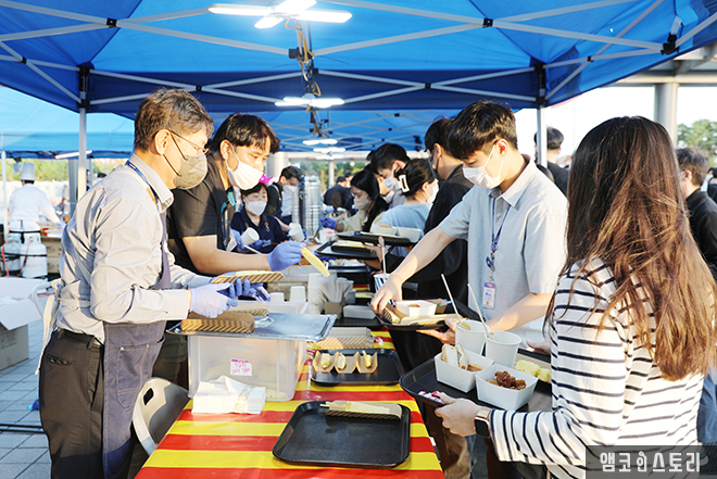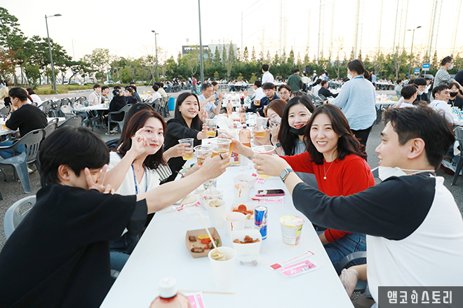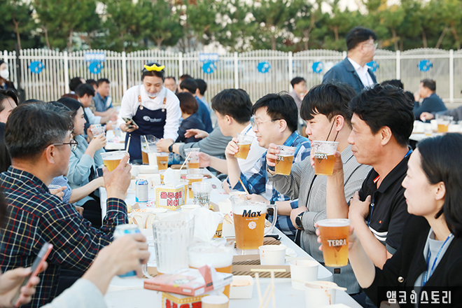 앰코코리아 K3사업장(인천 부평)과 K5사업장(인천 송도)은 9월 21일부터 10월 5일까지 ‘2022 호프데이’ 행사를 개최했습니다. 3년만에 열린 이번 행사는 사업장 내에 행사장을 만들어 사원들을 위해 맥주와 목살 스테이크, 치킨 등 다양한 먹거리를 제공하였으며, 앰코코리아를 방문하였던 고객사, 협력사와 관계사는 물론, 사원자녀들도 함께 어울린 모습을 볼 수 있었습니다. 이번 행사로 사원들은 반복되는 일상에 잠시 벗어나 스트레스를 해소할 수 있는 소중한 시간을 가질 수 있었습니다.