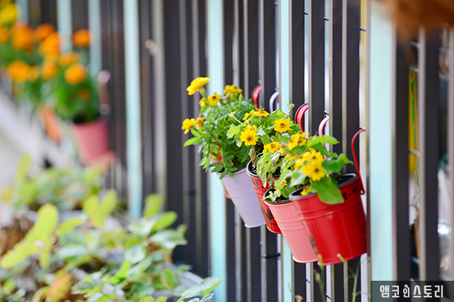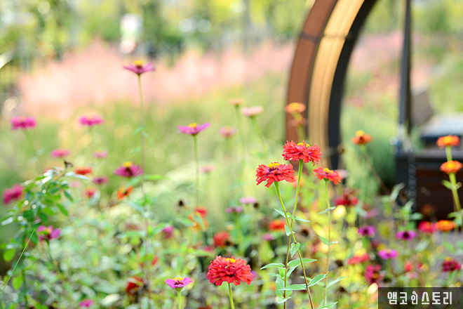 따갑게 작렬하던 여름 태양이 단풍잎과 꽃들 속에 체포되었나 봅니다. 망중한을 즐기며 동네를 거닐수록 가을동화 속에 퐁당 빠진 느낌입니다.