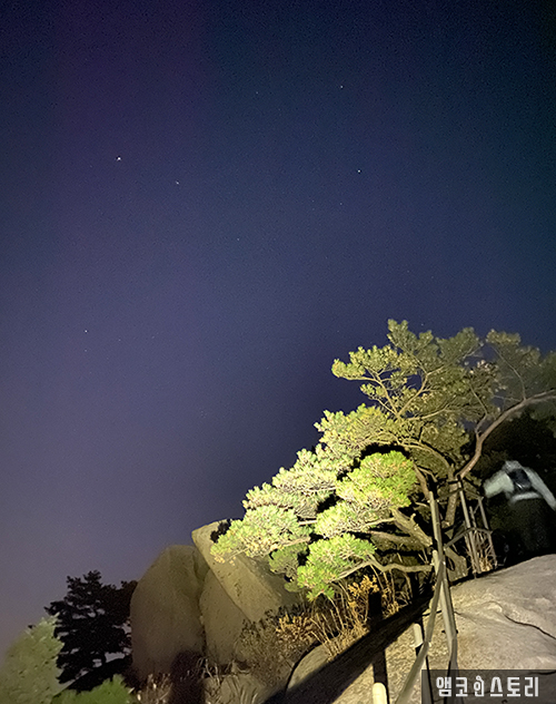 깜깜한 새벽부터 산행을 시작하면 사실 보이는 게 거의 없어서, 생각보다 더 빠르게 올라가게 됩니다. 밤하늘의 별도 선명하게 보이고, 뭔가 낭만 있는 새벽 산행이었습니다. 오늘은 특히 오리온 자리가 잘 보이는 날이었습니다.