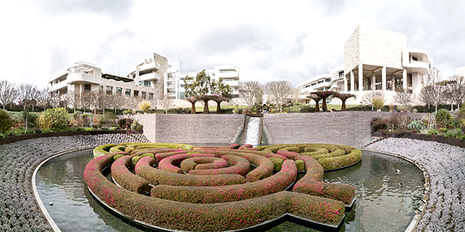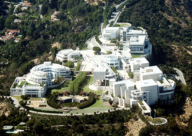 게티 센터는 1950년대에 활동한 미국의 석유재벌이자 미술품 수집가인 잔 폴 게티가 본인의 소장품과 기부금으로 조성한 박물관으로, LA시 위쪽 언덕 꼭대기에 자리 잡고 있습니다. 설립자가 생전에 꾸준히 구매해온 예술품들은 게티 빌라(Getty Villa)와 게티 센터(Getty Center) 두 곳에 무료로 전시하고 있는데, 게티 빌라는 1970년대에 전시장으로 사용하다가 모든 소장품을 전시하기엔 너무 좁아 대규모 전시장인 게티 센터를 1997년에 개장을 하게 됩니다.