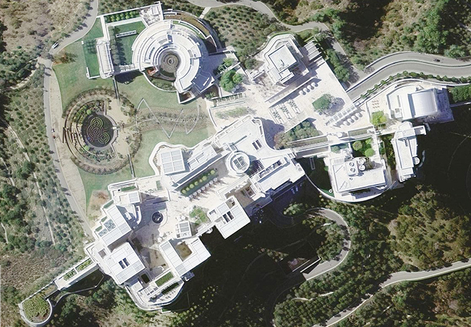 게티 센터는 1950년대에 활동한 미국의 석유재벌이자 미술품 수집가인 잔 폴 게티가 본인의 소장품과 기부금으로 조성한 박물관으로, LA시 위쪽 언덕 꼭대기에 자리 잡고 있습니다. 설립자가 생전에 꾸준히 구매해온 예술품들은 게티 빌라(Getty Villa)와 게티 센터(Getty Center) 두 곳에 무료로 전시하고 있는데, 게티 빌라는 1970년대에 전시장으로 사용하다가 모든 소장품을 전시하기엔 너무 좁아 대규모 전시장인 게티 센터를 1997년에 개장을 하게 됩니다.