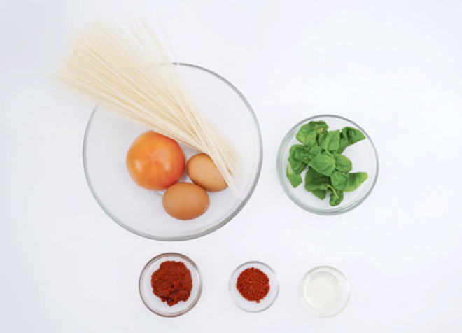비빔소스 : 토마토(200g), 고추장(½Ts), 고춧가루(½Ts), 꿀(1Ts)
