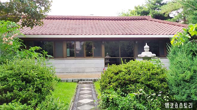 본채는 어딘지 한옥과 일본식, 서양식을 교묘히 섞인 듯한 인상을 풍깁니다. 설명을 읽어보니 주택은 1931년에 한옥의 형태로 처음 건축되었고, 1951년부터 박인천 회장 내외와 가족이 거주하면서 몇 차 차례의 증개축하여 지금의 모습을 갖추었다고 해요. 그리고 1958년에는 원래의 사랑채를 헐고 새로운 터에 2층 양옥 형태의 사랑채를 신축하였어요. 본채와 사랑채로 구분된 이 두 동의 주택은 우리나라 근현대 시기에 대가족이 함께 사는 구조로서 전통적 주거개념과 현대적 주택설계가 조화된 양식이라 할 수 있답니다.