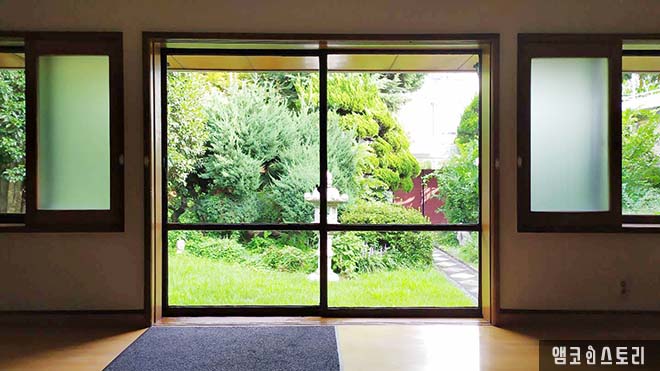 자택 내부에서 창을 통해 밖을 바라봅니다. 오후의 햇살 속 초록은 더욱 빛나고 있는데요, 박인천 회장은 1977년 ‘영재를 기르고, 문화는 가꾸고’라는 슬로건으로 금호아시아나문화재단을 설립하였습니다. 이에 재단은 이러한 유지를 이어받아 주변 토지를 확장하여 총 5,523.3㎡의 대지 위에 예술 조각품과 수목이 어우러진 도심 속의 시민문화공간으로 조성하였습니다.