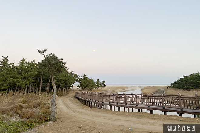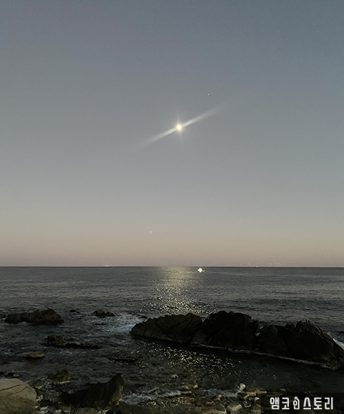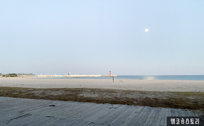마지막에 대진해수욕장 > 고래불해수욕장이 영덕 블루로드에서 가장 아름다운 해수욕장이었던 것 같아요. 코스의 마지막이라는 벅차는 감정과 일몰 후 붉은 하늘과 맑은 바다, 그리고 그 위에 떠 있는 달이 어우러져 표현하기 어렵지만 뭉클함이 있는 그런 경치였던 것 같습니다. 봄과 가을에 걷기 좋은 식도락과 풍경, 두 가지를 모두 만날 수 있는 영덕 여행지로 추천합니다. 모두 걷는 것이 부담된다면 한 번에 걷지 않더라도 나누어서 걷는 것도 좋은 방법일 수 있어요~!