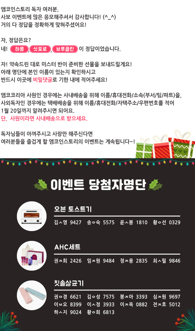 | 추억의 겨울간식 이벤트 결과 발표_웹진 [앰코인스토리] (24) | 2022.11.25 |