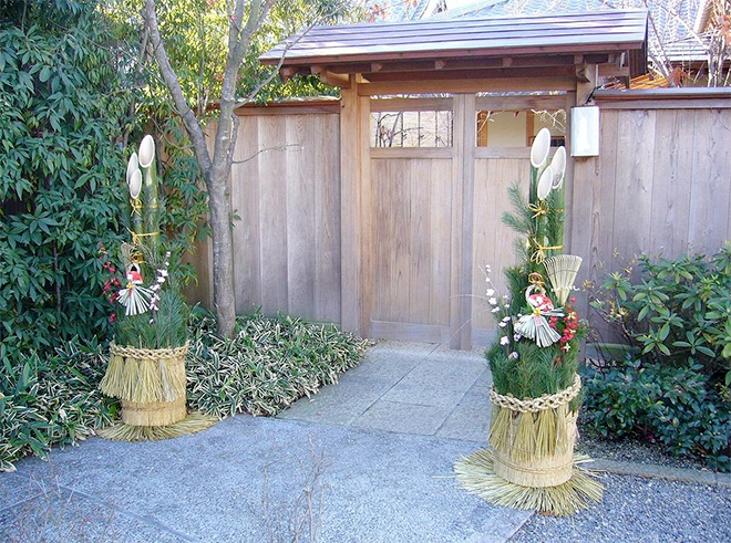 일본 사람들은 소나무에 조상신이 온다는 생각이 있어 솔가지로 장식을 합니다. 이렇게 함으로써 천수를 누리며 장수하기를 기원하는 것입니다. 소나무는 천세를, 대나무는 만세를 계승한다고 믿어, 신에게 영원을 기원하는 의미를 갖기도 합니다. 모양도 다양하고 시대에 따라 변천하여 지방마다 다른 모양을 장식하기도 합니다. 보통 1월 7일까지 세워 둡니다.