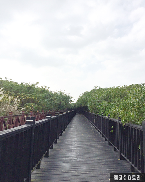 산책로를 따라 걷다 보면, 곳곳에 습지와 갈대와 어우러진 맹그로브를 볼 수 있습니다. 그리 깨끗한 물은 아니지만 자연 그대로의 모습을 볼 수 있습니다. 자연 생태 공원이므로 가을과 겨울에는 여러 철새들을 볼 수 있습니다. 백로가 여유롭게 날아가는 모습도 쉽게 볼 수 있어요. 그리고 습지에는 많은 게들이 서식하고 있습니다.