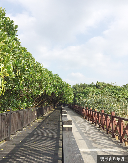 보통은 근처에서 자전거를 빌려 자전거를 타고 자연 생태공원을 둘러보기도 하지만, 이번에는 좀 더 여유를 갖고 둘러보기 위해, 걸어서 생태공원을 탐방해 보기로 합니다. 단수이 하구는 곡선 형태로 되어 있어 곳곳 경치를 즐길 수 있는 곳이 많이 있습니다.