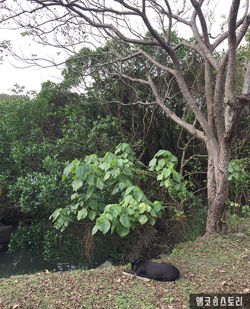 숲 속 작은 어항에는 많은 배들이 정박해 있는데요, 물이 들어오는 시기에는 운이 좋으면 전통 방식으로 물고기를 잡는 방법을 볼 수 있다고 하네요. 여유롭게 잠을 청하고 있는 강아지를 보니 불현듯 ‘개 팔자가 상팔자’라는 속담이 떠오릅니다.