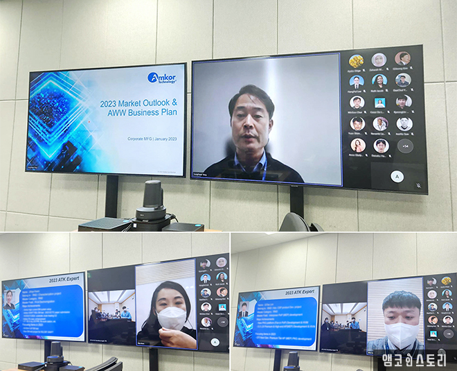 1월 31일, 2023년 1st AWW 전문위원 포럼이 ATK를 포함, AWW 전문위원 및 HR 담당자, 파견자, PIC 등 총 110명 이상이 참석한 가운데 온라인으로 개최되었습니다. 2021년 12월, 총 6개국(한국, 필리핀, 중국, 대만, 말레이시아, 일본)이 참석한 가운데 진행한 Kick Off를 시작으로 격월로 운영 중인 이번 포럼에서, Amkor Corp. 양성환 실장은 ‘2023 시장 전망과 AWW Biz. 상황’을 공유하면서 One Amkor로써 현재 중요한 역할을 하고 있는 전문위원들이 서로 협업하여, 올해의 위기를 극복할 수 있도록 적극적인 참여와 활동을 해달라고 격려하였습니다. 이후 신임 AWW 전문위원(한국, 필리핀, 대만)의 담당 업무 및 주요 성과, 향후 Plan 소개 등의 업무 공유를 통해 AWW 간 활발한 교류가 이어졌습니다. 오는 4월에는 AWW 전문위원이 제안한 주제로 본 포럼이 진행될 예정입니다.
