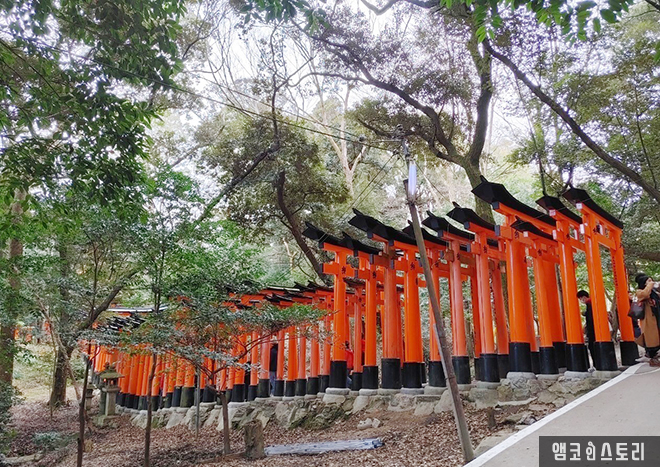일본 전역에는 약 3만 개 정도의 이나리 신사가 있는데 그 본점격이 이곳 교토의 후시미 이나리 신사입니다. 이나리 신은 오곡 풍요를 관장하는 농업 신이었는데 상업 번창, 사업 융성, 가내 안정, 교통 안전, 예능 향상의 수호신으로도 추앙받고 있습니다. 그래서 이 후시미 이나리 신사에는 전국 각지에서 기증한 도리이가 만 개 이상이나 있다고 합니다. 그래서 매년 1월 1일이 되면 많은 사람들이 신사에 모여 새해에 운수가 대통하길 기원합니다.
