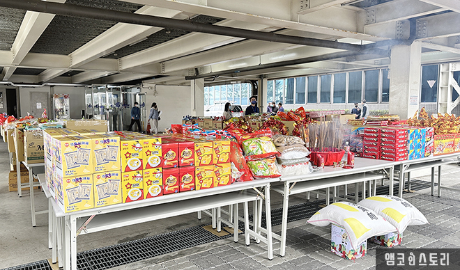 빠이빠이 행사는 보통 공장별로 진행됩니다. 아마도 공장별로 신이 다르기 때문에 각각 행사를 진행하는 것 같습니다. 행사는 미리 공지가 되고 그 시간에 가능한 많은 인원이 참석해 같이 빠이빠이 행사를 합니다.