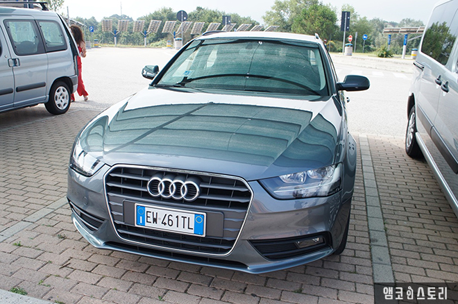 렌터카 예약 시 차종은 고를 수가 없고, 대신 등급만 선택하게 되어있는데 필자는 프리미엄 오토급으로 선택했다. 어떤 차가 나올까 궁금했는데 Audi A4 웨건형이 나왔다. 28인치 1개, 26인치 1개, 20인치 2개 캐리어와 배낭 등을 싣고 다닐 수 있을 정도로 트렁크는 넉넉했고 몇백 km도 달리지 않은 새 차가 나왔다.