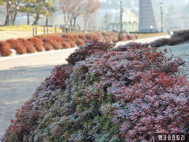 산책을 위해 방문한 장미정원은 가지들이 겨우내 전정된 상태라 넓은 정원이 휑하지만, 3개월 후쯤 이곳은 장미들이 형형색색 만개하여 상춘객들에게 눈길을 끄는 핫플이 되겠지요. 아직은 아침저녁으로 기온이 낮아 철쭉 위엔 새벽녘에 서리가 하얗게 내려앉았지만, 그 속에서 연녹색 어린 잎이 자라나는 소리가 들리는 것 같습니다.