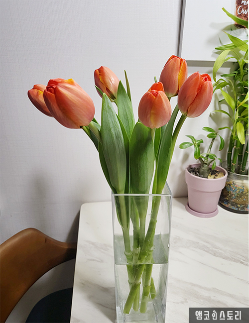 가끔 분위기를 바꿔보고자 할 때 저는 고속버스터미널 화훼상가를 방문해 꽃을 조금 사오곤 합니다. 지난 주말에도 토요일 새벽에 방학 중인 아이들과 다녀왔는데요, 화병의 종류를 다양하게 갖고 있는 것도 아니고 꾸미는 재주가 그다지 있지도 않지만, 아내와 함께 대충 손질만 해 화병에 꽂아만 놓아도 꽃이 나머지는 다 알아서 해줍니다. 집안 분위기가 화사해지고 종에 따라 정도가 다르게 주변에 향을 발산해, 아이들도 참 좋아하더라고요.