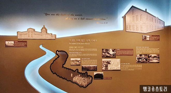 영상 관람을 마치고 이제 본격적인 전시실 내부 관람을 시작합니다. 먼저 <여정의 시작>에서는 청년 최흥종이 유진벨과 포사이드 선교사를 만나면서 기독교인으로 새로운 삶을 시작하게 된 과정을 만나볼 수 있습니다. 광주 불로동에서 태어난 그는 어려서 조실부모하고 부랑아들과 어울리며 방탕한 생활을 이어갔는데요, 그런 그가 유진벨 선교사를 만나 자신의 삶을 돌아보고 신앙의 길로 들어섭니다. 그러던 1909년 추운 겨울, 흉측한 몰골을 한 한센병 환자를 부축하고 오는 포사이드 신부를 만나고 그의 자애로운 모습에 큰 충격을 받습니다. 그 속에 깨달음을 얻은 최흥종은 이후, 광주 최초의 목회자로, 환자의 아버지로, 독립운동가로, 사회운동가로 고독한 성자의 길을 걷게 됩니다.