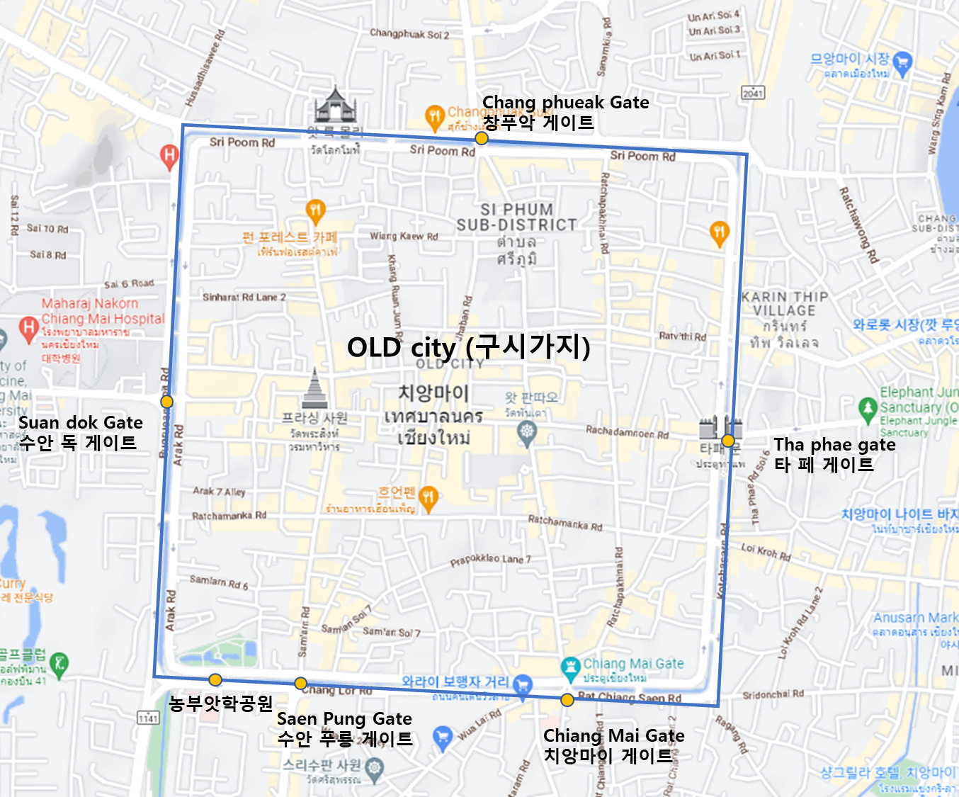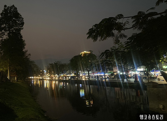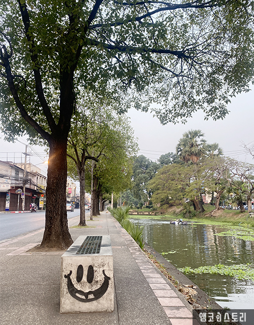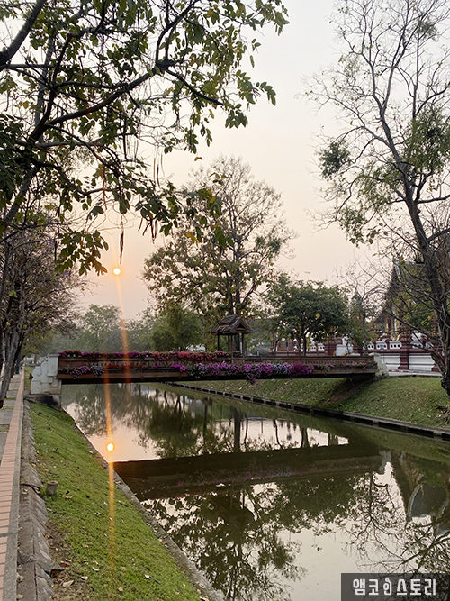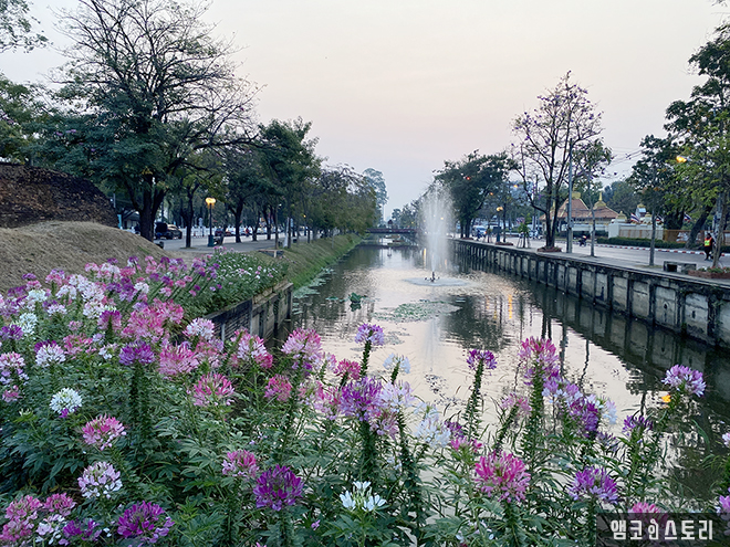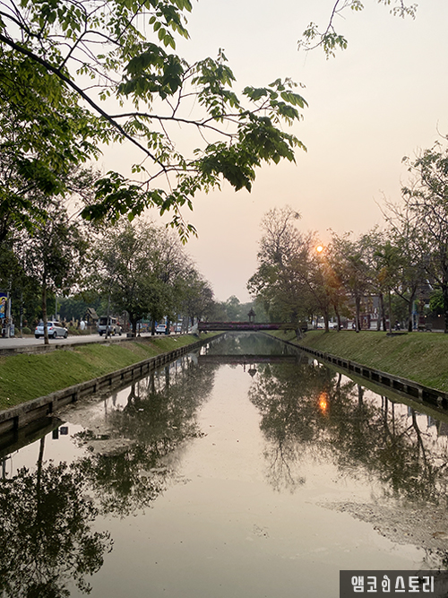 치앙마이의 구시가지를 둘러싼 사각형의 성곽을 따라 해자(연못)가 둘러싸고 있는데요, 외세의 침입을 막기 위해 중심부를 성으로 두른 후 그 주위를 해자(연못)로 둘러싸면서 만들어졌다고 합니다. 우리나라의 한양 도성과 같은 걸로 생각하면 될 것 같아요. 이 길을 따라 이른 아침 러닝(산책으로 걷기도 좋은 길입니다)을 하며 치앙마이의 정취를 더 깊게 느낄 수 있어 추천합니다!