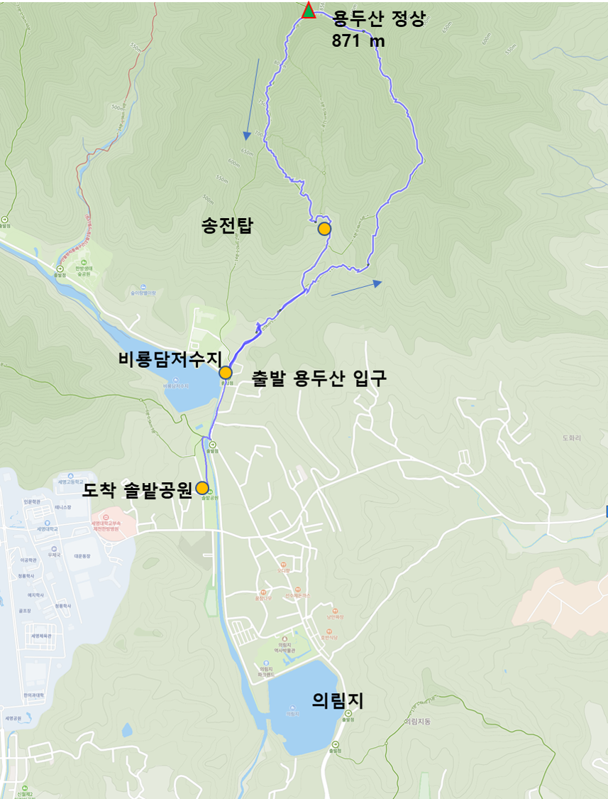 용두산은 산행로가 가벼운 트레킹으로 갈 수 있을 정도로 어렵지 않은 길입니다. 중간에 조망은 없지만 나무가 잘 우거진 길이 선선하고 걷기 좋아, 누구나 접하기 좋은 산이라는 생각이 들었습니다. 특히, 정상은 헬기장이 있어 넓게 탁 트인 곳으로 조망이 좋습니다. 제천시와 의림지를 한눈에 바라볼 수 있는 제천을 감상하기 좋은 산입니다. 일출이나 야경도 아주 멋진 곳으로 알려져 있습니다.