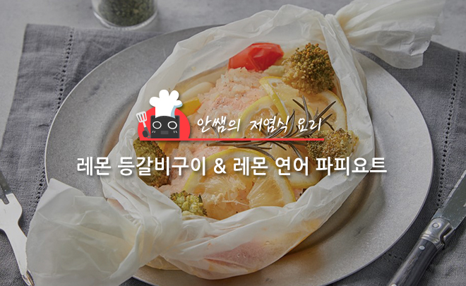 레몬 등갈비구이는 레몬으로 간을 맞췄고, 디핑 소스는 뿌리지 않고 찍어 먹으면 나트륨 섭취를 줄일 수 있습니다. 레몬 연어 파피요트는 레몬즙으로 간을 맞춰 나트륨을 적게 사용하고, 과일과 채소 본연의 맛을 살렸습니다.