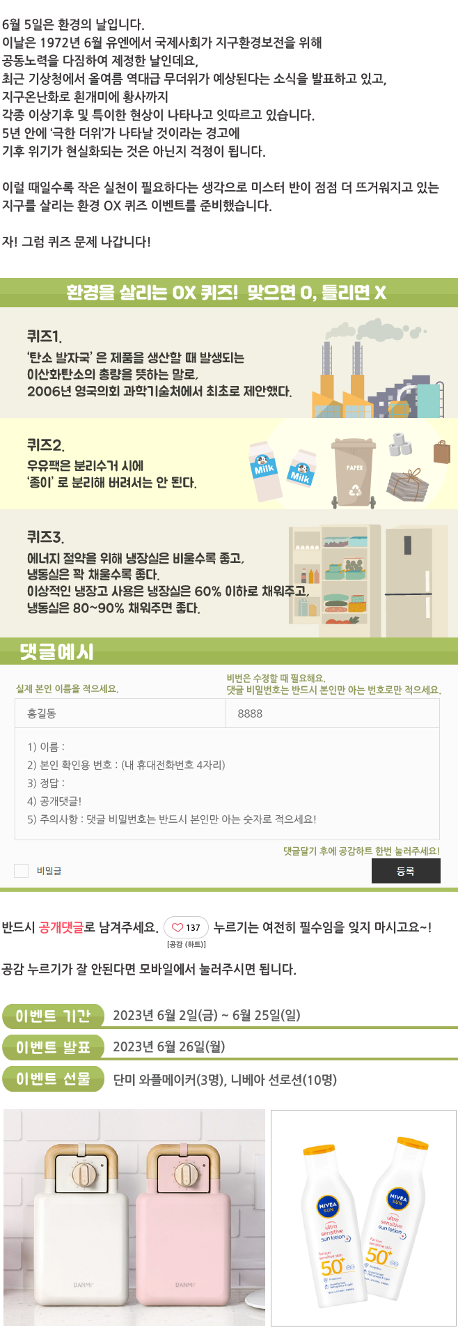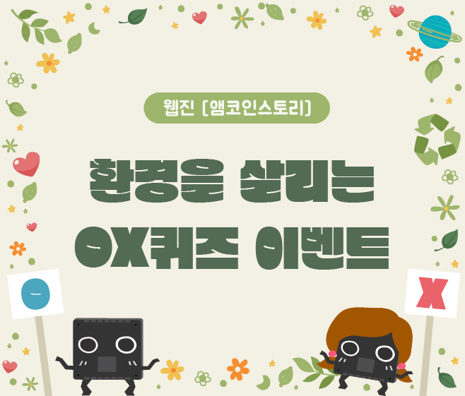 | 환경을 살리는 OX퀴즈 이벤트 결과 발표 _ 웹진 [앰코인스토리] (2) | 2023.06.26 |