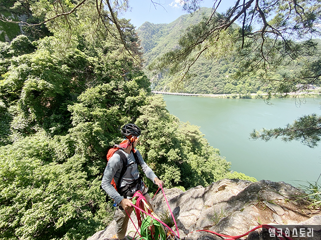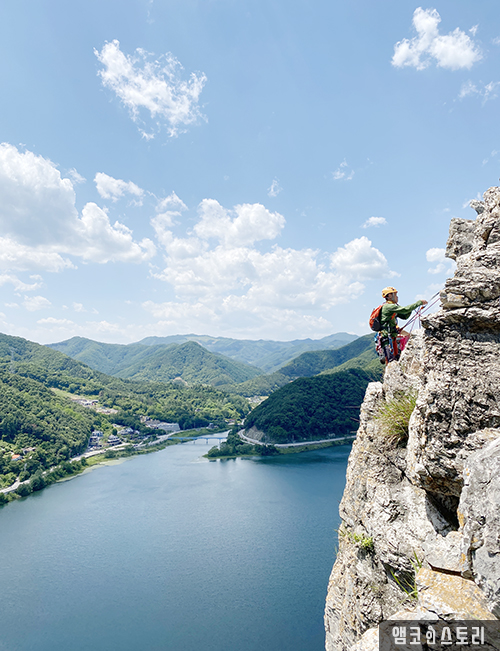 필자는 암벽등반으로 의암봉을 올랐는데요, 북한강이 맞닿은 듯 바로 바라보며 오르는 경치가 너무나 아름다웠습니다. 혹시 암벽등반을 한다면 춘클릿지도 꼭 추천하고 싶어요. 바위에서 만나는 산과 강의 풍경은 또 다른 즐거움과 더 멋진 경치를 만날 수 있어요.
