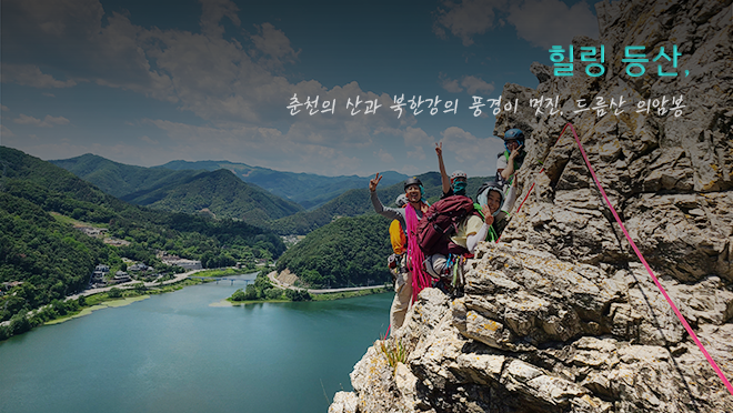 춘천 도심에서 가까운 위치에 있는 드름산은 북한강을 사이에 두고 정상에서 건너편 삼악산과 북한강의 경관이 멋진 곳입니다. 사실 이곳은 ‘춘클릿지’라고 하는 암벽등반으로 유명한 곳인데요, 난이도가 어렵지 않고 강과 산의 경치가 멋져서 인기가 많은 곳입니다. 특히, 드름산 의암봉은 왕복 한 시간 코스로, 짧고 어렵지 않게 멋진 경관을 구경할 수 있는 곳이라 독자 여러분들께 소개해 봅니다.