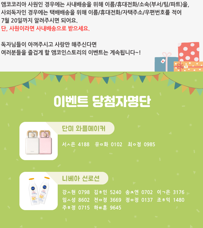 | 나만의 여름 음식! 이벤트 결과 발표 _웹진 [앰코인스토리] (3) | 2023.07.26 |