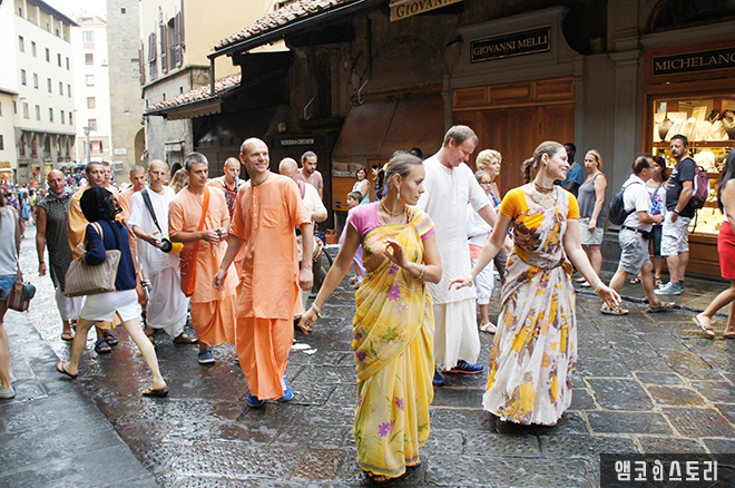 베키오 다리 위로 가보니 정말 많은 관광객들이 있다. 어디선가 노랫소리가 들려 봤더니 전통 춤을 추며 지나가는 행렬이 오고 있다.