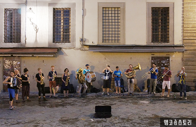 저녁식사를 마치고 숙소로 돌아가는 길, 골목 어디선가 음악 소리가 들린다. 작은 밴드가 음악을 연주하고 있다. 아름다운 피렌체의 밤이다.