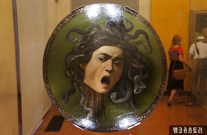 관람객들의 시선을 한눈에 사로잡는 카라바조의 작품 <메두사>. 머리카락이 뱀이고, 눈이 마주치는 사람을 모두 돌로 만들어 버리는 악마 메두사에 자신의 얼굴을 그려 넣었단다. 이리저리 위치를 바꿔가며 작품을 보아도 나를 계속 쳐다보는 듯한 눈이 무척 인상적이다.