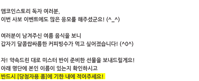 | 사내방송 구독 이벤트_웹진 [앰코인스토리] (70) | 2023.08.02 |