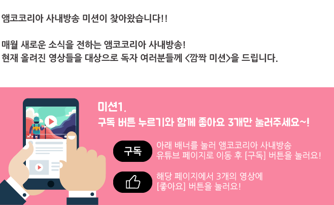 | 사내방송 구독 이벤트 결과 발표 _웹진 [앰코인스토리] (1) | 2023.08.25 |