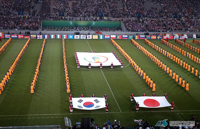 이런 모든 변화 중에서도 가장 큰 영향력을 느꼈던 것은 2002년 한일 공동 주최로 열린 FIFA 월드컵입니다. 2002년에 열린 17회 FIFA 월드컵. 21 세기 새천년에 개막한 첫 번째 월드컵이자 아시아 최초의 월드컵이며 한국 최초로 HD로 생중계된 월드컵이기도 합니다. 역대 월드컵은 물론 주요 국제 스포츠 대회 중 두 개의 나라에서 처음으로 공동개최한 대회이기도 합니다.