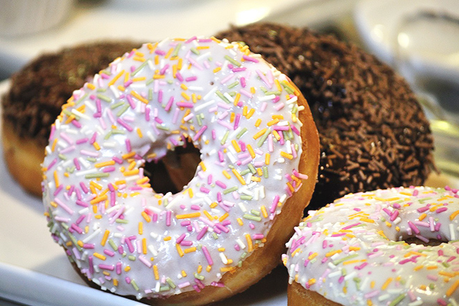 미국에서 ‘국민간식’이라고 하면 당연 도넛(Donut)이 몇 손가락 안에 꼽힐 겁니다. 그만큼 많은 사람이 아침 식사 나 간식으로 자주 먹는 음식이지요. 회사나 작은 단체에서도 간식이 제공된다면 거의 도넛이 나온다고 해도 무방합니다. 피자는 따뜻해야 제맛이 나지만 도넛은 식은 후에 먹어도 괜찮기에 최고의 행사 제공 음식이거든요. 도넛은 밀가루에 설탕, 계란, 우유, 지방, 이스트를 넣어 만든 반죽을 둥글게 빚어 안쪽에 구멍을 뚫어 링 모양으로 만들어 기름에 튀긴 빵입니다. 거기에 초콜릿이나 글레이즈 또는 알록달록한 색깔의 스프링클스를 뿌려 시각적인 효과와 단맛을 더했으니 맛이 없을 수가 없겠지요.