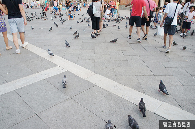산마르코 광장은 다 좋은데, 비둘기가 너무 많다. 특히 모이를 주는 사람이 있으면 어디서 그렇게 많은 비둘기 떼가 모여드는지.